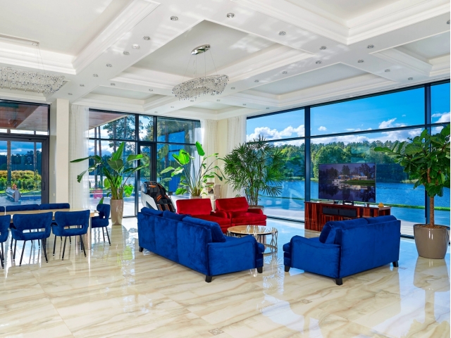 Современная вилла с уникальным месторасположением на берегу озера и открывающимся видом через панорамные окна, от которого захватывает дух.